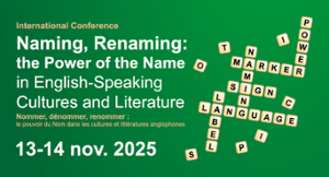 - [CEL – IETT – EMMA] Colloque | Nommer, dénommer, renommer : le pouvoir du Nom dans les cultures et littératures anglophones13 novembre 2025 14 novembre 2025